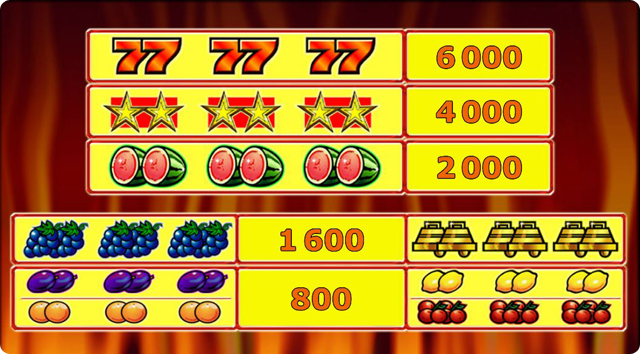 Во время игрового процесса пользователи увидят на экране картинки с апельсинами, желтыми лимонами, виноградом, вишней, сливами, колокольчиками, арбузами, звездами и семерками. Такие символы уже считаются типичными для подобных азартных игр. Недостатком можно считать отсутствие вайлда и скаттера. Также в игровом автомате нет бесплатных вращений.